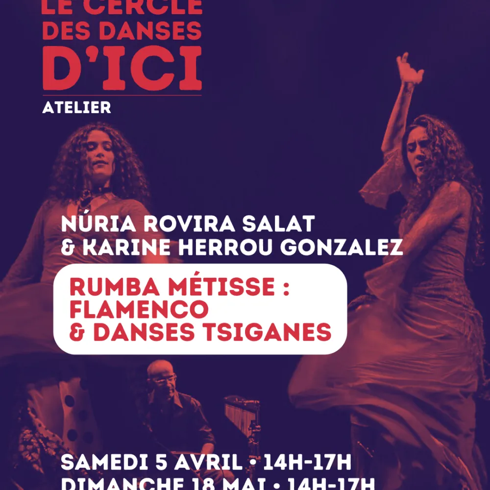 Ce stage est une revisite de la rumba flamenca, une danse métisse par essence, qui a traversé les frontières. Núria Rovira Salat et Karine Gonzalez nous présentent leur travail de recherche, qui, au fil de leurs créations communes a donné lieu à la Rumba métisse, une danse qui célèbre les points communs entre la danse gitane espagnole et la danse tzigane des Balkans. Un pont qui va du Bosphore à Gibraltar et qui retrace la route du peuple Rom et ses influences.