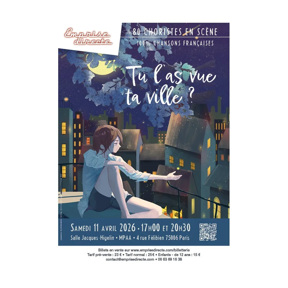 Emprise Directe, ce n’est pas une simple chorale. Nous sommes une troupe de 80 chanteurs-acteurs amateurs (et vraiment, ça nous plait comme ça !) qui, autour d’un thème chaque fois renouvelé, montent sur scène pour interpréter des chansons francophones, récentes ou un peu moins, d’artistes célèbres ou à découvrir. Guidés par une équipe professionnelle, composée d’un talentueux pianiste et d’une metteuse en scène inspirée, tout cela sous la direction artistique et de chœur de Guillaume Le Ray, nous développons ainsi notre potentiel en conjuguant exigence et plaisir !